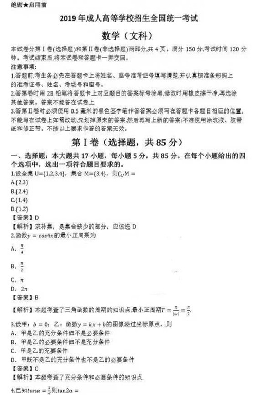 2019年成人高考真題及答案新鮮出爐,持續(xù)更新中!